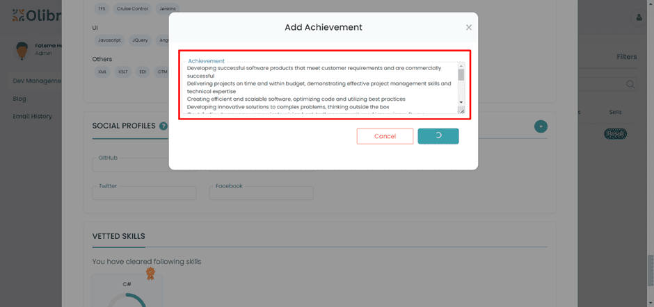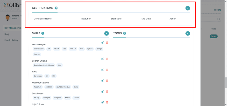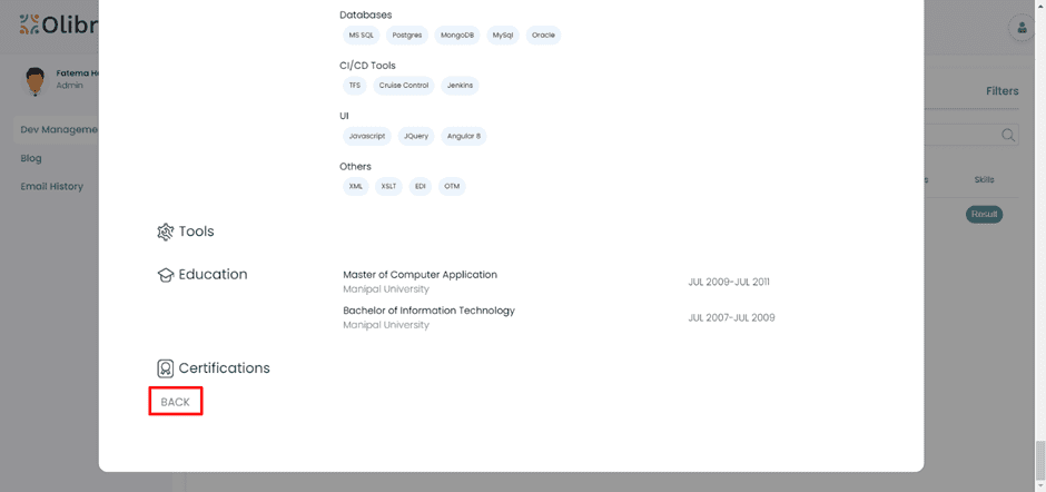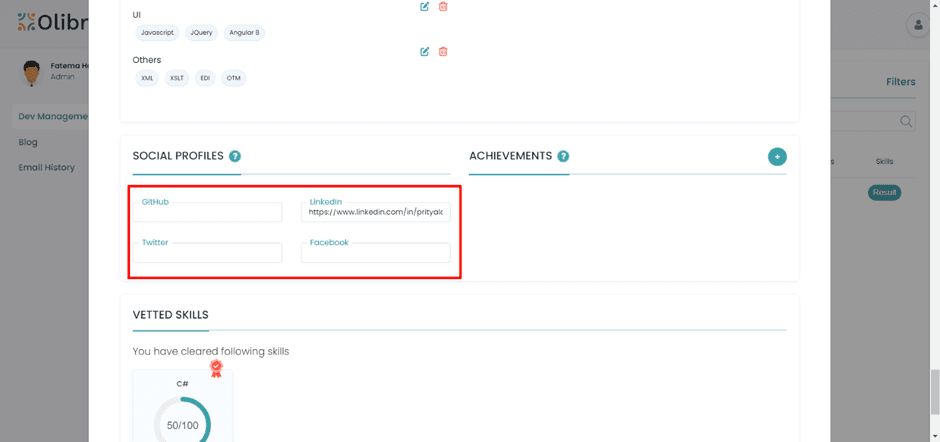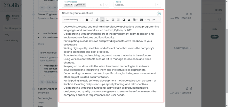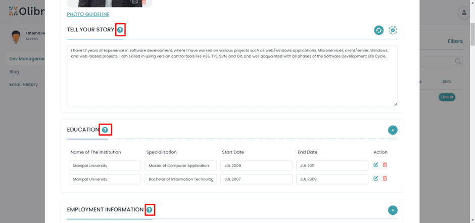 Step-2:Olibr auto-fills some profile sections from your uploaded resume during sign-up. Ensure you update, edit, and complete any missing details.
