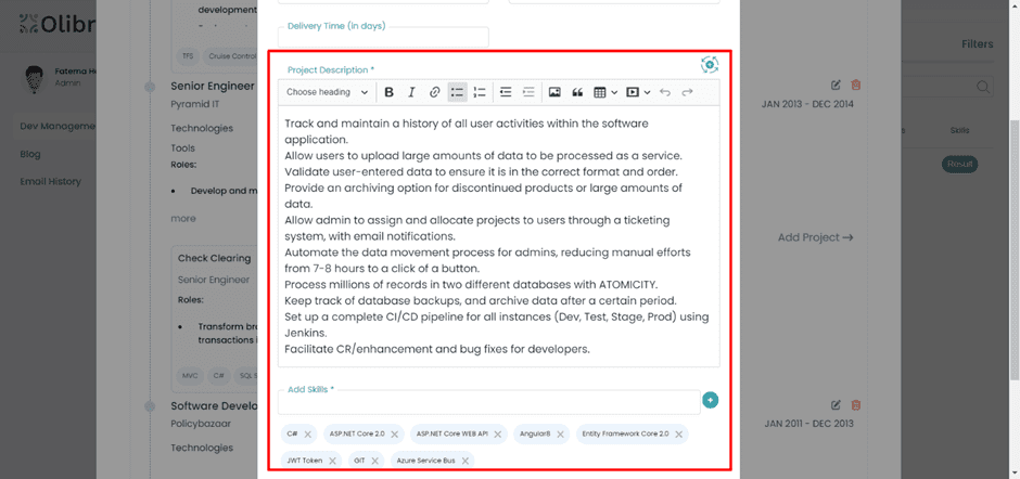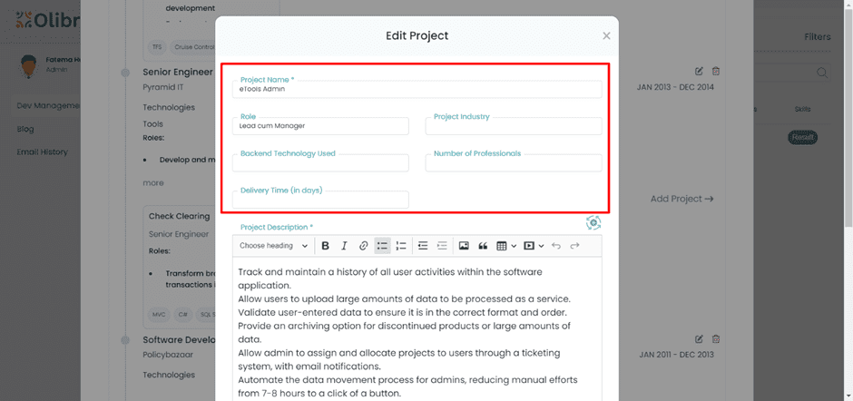 Step-8: After completing the above sections, proceed to list any projects you’ve completed with the company. Click “Add Project” and begin entering the relevant details.